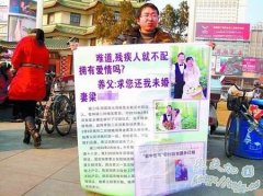 残疾青年夏海波手里举着写有难道,残疾人就不配拥有爱情字样的喷印牌 大河网2月22日报道 刚和女友在湖北天门老家举行过订婚仪式,女友返回老家后就被家里人看管...