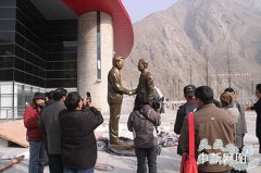 汶川禹羌博物馆收藏"胡主席和温总理在灾区"雕塑