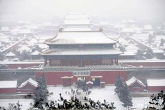 北京普降大雪,纷飞瑞雪把北京故宫打扮得银装素裹 大雪中的鸟巢 大雪中的北京前门商业区 大雪中的德胜门更加美丽 鸟巢外的河面,游客在露出冰面玩耍,摔跤连连...