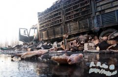 江苏宁连高速货车失火 20吨鸡腿被烤熟