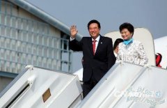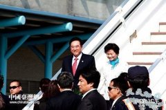 视频说明:江丙坤在台中的酒店欢迎陈云林的到来。 海协会会长陈云林率海协会代表团,乘坐国航包机,于二十一日中午十二时许抵达台中清泉岗机...