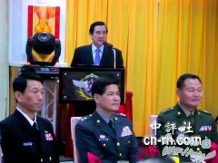 马英九25日中午与台军官兵举行联欢餐会,他称,绝不希望炎黄子孙,再引兵戎来解决问题。 图片来源:香港中评社 环球网1月25日消息,马英九25日中午在台国防部春...