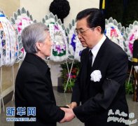 1月24日,刘华清同志遗体在北京八宝山革命公墓火化。这是胡锦涛与刘华清亲属握手,表示深切慰问。新华社记者马占成摄 刘华清同志遗体在京火化 刘华清同志病重期...