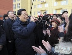 视频说明:胡锦涛考察北京民生 强调稳定物价 这是胡锦涛在朝阳区管庄路保障性住房常营项目丽景园小区考察时,向小区居民致以新春祝福。新华社记者 李学仁 摄 这...