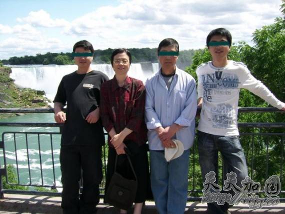 曾经幸福的一家人:2007年蒋成黎与家人在尼亚加拉大瀑布合影(应蒋成黎家人要求图片做处理,图片由家人提供)