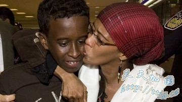 在摩哈姆德等行李时,有些行李工认出了她已被媒体炒熟的面孔,于是有的节奏地欢呼,欢迎之声不绝于耳。通过安检后,终於见到数月来魂牵梦縈的儿子 侯赛因(Mohamed Hussein)。在欢迎人群的嘈杂声中,她尽力抬高声调说:“我回来是为了我的儿子,这是我真正牵肠掛肚的。”说着奔向12岁的侯赛因,紧紧拥抱著他 说:“我的儿子,我的儿子。”