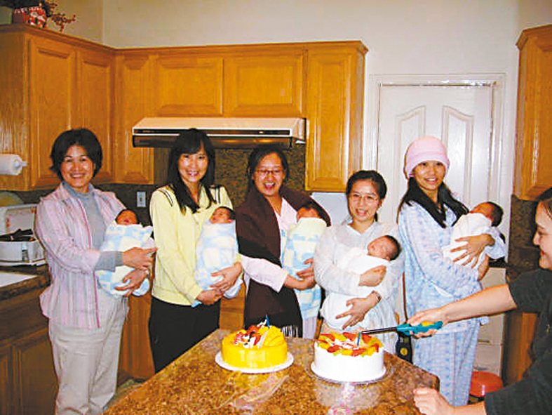 以旅游为名义,在美国洛杉矶顺利生下宝宝的妈妈们大功告成,在月子中心举行联谊会。
