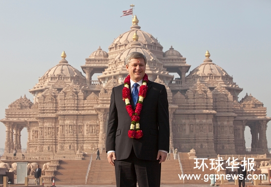 11月18日,新德里,总理哈珀访问BAPS的斯瓦米纳拉扬神庙。