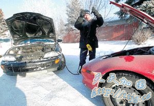 周日爱明顿创低温纪录,寒冷气温使汽车不能开动,需求助他人。