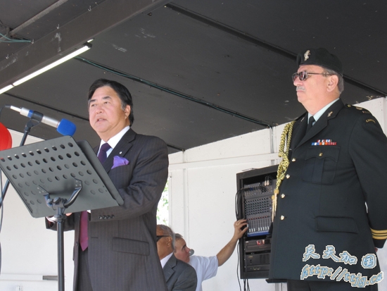 今年9月马尼托巴省新任省督李绍麟在温尼伯华人社区百年庆典上讲话(李文政 摄影)