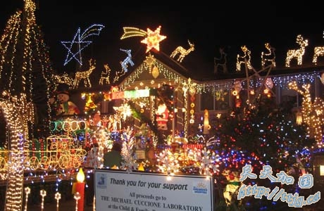特点:圣诞灯装饰已有25年的历史了,有近22英尺的圣诞树,唱歌的圣诞老人,近15,000盏灯。