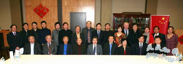 中国驻温总领事梁梳根(前排中)与部分侨界代表合影。前排右四为加拿大中国统一促进会执行副会长车英麟。 万 斌 摄