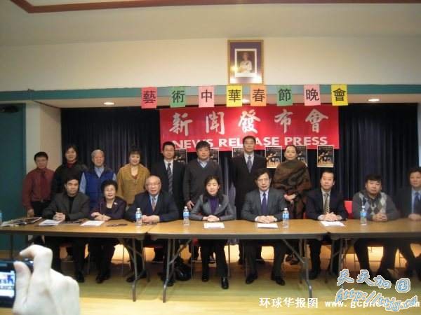 主办机构负责人与参与演出的部分华裔艺术家在记者会上合影。 黄运荣 摄