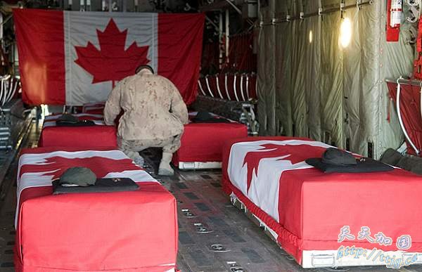 【环球华报记者 萧元恺】这是加驻军阿富汗以来最悲痛一日,4名军人和女记者兰格为国捐躯。英文媒体有读者留言:这样的代价太大了!让我们的孩子回家!明亮的冬日阳光更显苍白清冷,一串风笛如泣如诉的曲调划破长空,加军士兵挥泪跪送一列灵柩远去,魂归故里。