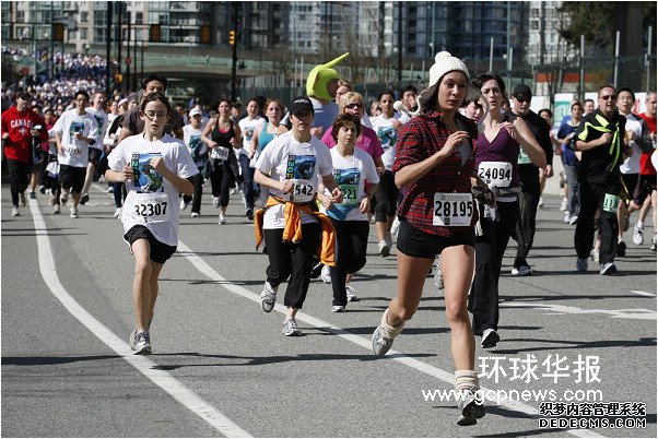 今年的参加人数共有49,346人,虽然气象预报可能会下雨,但所幸天公仍然愿意为这项年度盛事造美,星期日上午7点钟开始,近5万个参赛者陆陆续续抵达乔治亚街(Georgia Street)的温哥华酒店(Hotel Vancouver)门外,准备起跑。