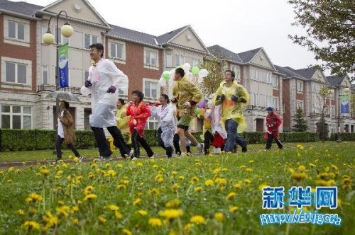 首届斯巴达勇士赛 5月14日,装扮成古罗马士兵的参赛者跑在队伍的前头。当日,加拿大温...