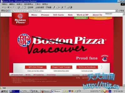 著名的披萨连锁餐厅波士顿披萨(Boston Pizza)在未来一周会暂时消失,原因是为了对温哥华加人冰球队(Canucks)表示支持,在与波士顿棕熊(Bruins)争夺史丹利杯期间,旗下全省62间波士顿披萨会易名为温哥华披萨(Vancouver Pizza)。