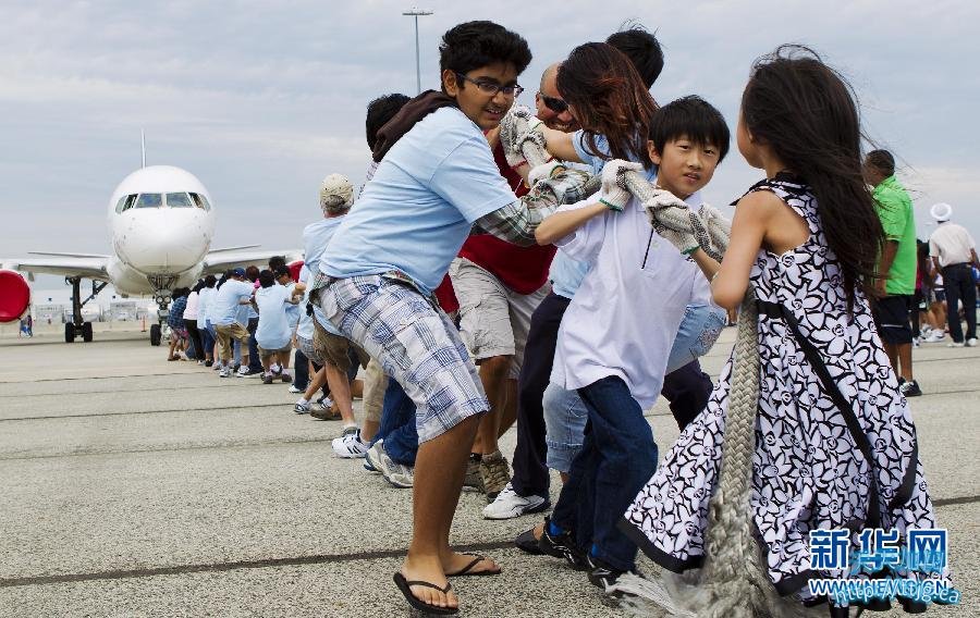 (责任编辑:东海)8 月20日,加拿大多伦多市举行“拉飞机比赛”,吸引了40支队伍参赛。比赛要求每支参赛队由25名选手组成,通过绳索拉动一架60吨重的货运飞机前进12 英尺(约合3.66米),耗时最短的队伍获胜。这项由“加拿大奥比斯眼疾治疗组织”主办的比赛,旨在为发展中国家眼疾儿童治疗募集资金。