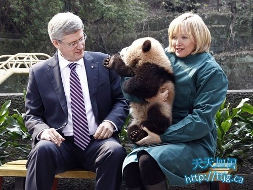 哈珀在访问重庆期间,和中国签署协议,租借两只大熊猫,租期十年。