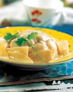 玉兰片烩猴头菇,鲜咸适口,诱人食欲。...