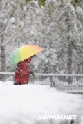 11月1日,行人在雪中行走。新华社记者 戴旭明摄 11月1日,一名游客在北京天安门前留影。新华社记者 才扬摄 11月1日,两名工人在雪中行走。新华社记者 戴旭明摄...