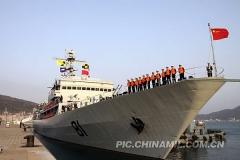 中国军校第一舰郑和号。中国军事图片中心发 记者王凌硕 摄 中国军网10月26日电 (记者王凌硕)中国人民解放军海军郑和号训练舰今天下午从大连启航,前往韩国镇...