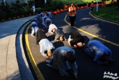 公园清晨,空气清新,三步一拜,默念吉祥。2009年8月27日清晨7时许,深圳仙湖植物园内,包括六位日本和尚在内的四五百名僧众,从仙湖植物园里的“天上人间”处开始拜山,为台湾风灾灾区祈福。...