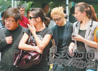 张小燕(右)和白冰冰在文英告别式上相拥而泣。