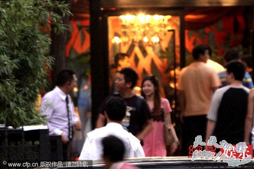 近日,下记者“扫街”路过某餐厅的橱窗发现了胡海泉,一身“夜行衣”的装束试图透露出“低调”二字。共同进餐的为一名身着粉红连身裙的美丽女子,海泉挑了餐厅内最为角落的一双情侣座。