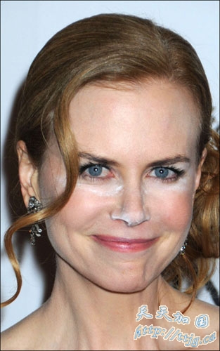 可是在最近一次《九》的宣传会上,一直都是媒体绝对的关注焦点妮可·基德曼却大大的丢了一回面子。礼服得体,发型优雅的妮可,居然在脸部妆容上出了问题,精致的妆容可能是由于粉底过厚或者肤质太干或者是因为妆容结束忘记扫除眼部散粉,惨变成了“花脸面粉女”,浮粉效果十分严重,给美丽大大了折扣。