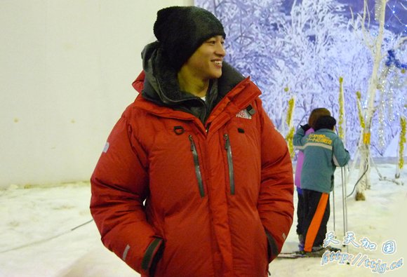 何润东在滑雪场笑容灿烂