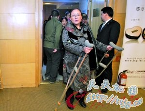 2009年12月26日,北京,斯琴高娃拄拐杖参加活动。