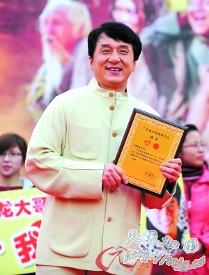 成龙昨日被授予广东志愿者协会名誉会长。