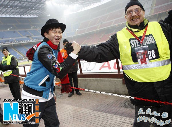 由于米兰的球票是实名制,所以当天邓超与随行人员提前一个小时就到达了球场,排队拿着自己护照证件买票,当看到一群东方面孔,每个人都围着AC米兰的围脖时,旁边的意大利球迷也非常热情,喊着口号主动要求合影留念。球场外的快餐车则是当地球迷聚集的好地点,每个快餐车前,很多人都是吃着面包,喝着啤酒,不时唱着AC米兰队歌。