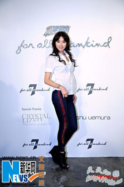 好莱坞星级牛仔裤品牌在1月27日晚上在北京举行登陆派对暨2010年春夏时装发布会。林志玲身着由品牌设计总监Rosalla亲自操刀特别设计的7 For All Mankind “志玲版” 牛仔裤作为特别嘉宾亮相。林志玲展现平日少见的野性一面,在台上调戏男模。