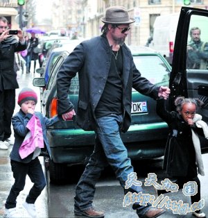好男人皮特带完孩子又献吻,让朱莉安心开工。