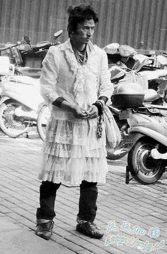 这是经网友PS过的“犀利哥”街拍照。对于这身行头,网友好评如潮。