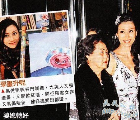 这次李嘉欣乖乖从良,背后盛传多得许家发功,开出五亿一胎的丰厚条件,令大美人超越徐子淇、梁洛施成为豪门No.1媳妇。为报答奶奶(即婆婆)支持,近日许太每天到中环画室开工,希望赶及母亲节送奶奶一幅爱心靓画。