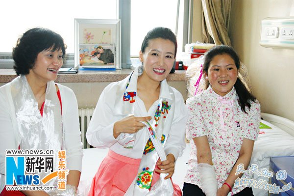 上周末,总政歌舞团著名歌唱家谭晶来到武警总医院,看望了正在此治疗的玉树灾区小女孩卓玛。得知卓玛即将康复出院,谭晶也是非常开心,特意买了一套裙子送给她,希望她能够有一个健康的身体,一直都有美好的生活。