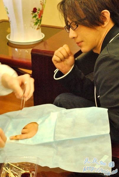 近日,刘谦在台北家中研究新魔术时不慎被刀切伤手指,缝了7针。医生表示伤口虽不算太长但切得很深,有没有切到手指神经还要做进一步的检查,能否恢复如初还将尚待观察。