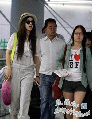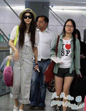 上周三范冰冰与团队抵达上海工作,夏日里她突然走起了日系风格路线,蝴蝶结草帽,搭配卷边背带牛仔裤,娃娃袖T恤,整个人看上去十分年轻,肩上显眼的最新款渐变牛仔布狐尾斜挎包,以及脚上的最新款坡跟铆钉鞋,则显示出强烈的明星气息。身着黑衣,耳套蓝牙的经纪人穆晓光寸步不离左右,专心为“女王”护驾。这位多次和范冰冰传出绯闻的经纪人丝毫不避嫌,最近几乎每次范冰冰出场他都亲自陪同,兼职保镖及保姆角色,尽职又尽责。难怪范冰冰早前在上海电影节上回应“绯闻”时,特意望着穆晓光开玩笑说:“他是一个非常专业的经纪人,如果你们硬要塞一个男友给我,他也是个不错的人选。”