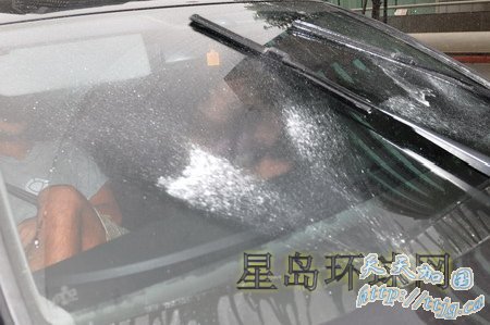 坐在司机位的林熙蕾不停用水拨喷水射向记者