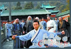 邓超:开拍前,有专门请师父来教太极拳的套路,因为拍摄需要的武打镜头是特别设计的,所以当时还要再和武术指导针对每一场戏份来实际操作,包括大量的吊“威亚”镜头。因为我是第一次拍打戏,大家都很照顾我,危险系数大的会考虑请武替完成。而且我觉得《倚天屠龙记》拍完之后,我在动作戏的处理方面积累了一些经验,在后面拍摄电影《狄仁杰之通天帝国》时起到了帮助作用。