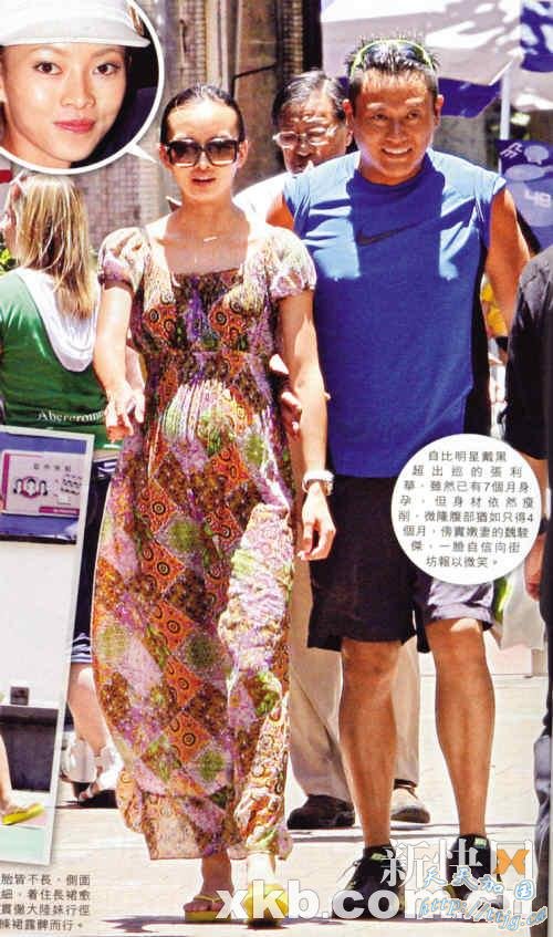 42岁的魏骏杰,2007年与年纪相差20 岁的重庆妹子张利华闪电结婚,张利华婚后即随老公到香港定居。魏骏杰讲明婚后即“造人”,今年初终于成功,老婆预产期为10月底。不过据香港媒体报道,由于张利华担心产后难修身所以不敢吃太多,已有7个月身孕的她看上去与怀孕4月的孕妇无异。