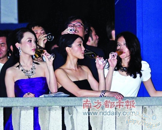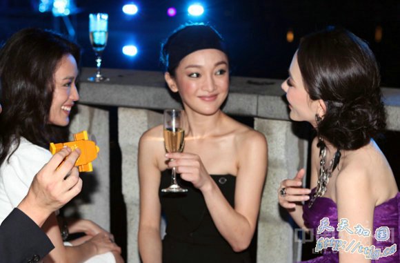 13日,某品牌秋冬发布会上海举行,周迅、舒淇、霍思燕三人现场并排饮酒,不时热聊大笑,碰杯作乐好不自在。