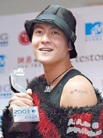 这张图应该很有名了,很温情的文身“嗨!妈妈”,让人觉得这个顽皮的男生也很可爱。可是随后的“艳照门”却让他更加出名,文身能代表爱心却代表不了人品。