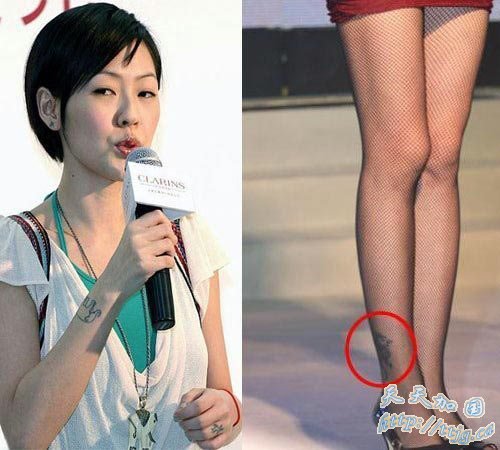 这个能看出来是谁吗?王菲! 背上的面积还有点大据说是为了纪念和谢帅哥的恋情,FAYE文的时候哭得厉害,“比生孩子还疼啊!”