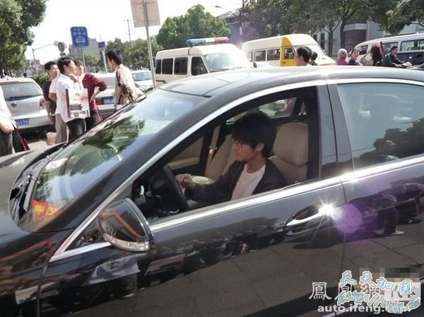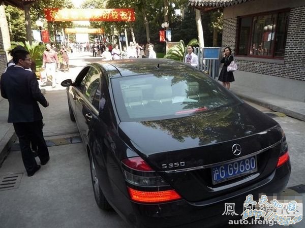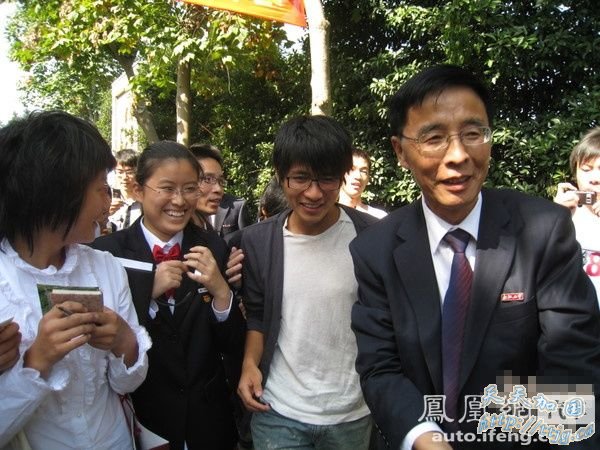 高一没毕业的韩寒开奔驰出席母校松江二中校庆,亲切交谈。