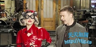LadyGaga与贾斯汀-丁伯莱克(右)一同录制《周六夜现场》
