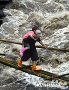 8月15日,在高雄县六龟乡新开部落,救援队搭起简易竹桥让村民渡河。新华社发(吴景腾 摄) 新华网消息 据台经济日报报道,莫拉克台风灾情惨重,民众抱怨连连,马英九心情也很沉重。他除了郑重道歉,表示当局应该可以做得更快、更好之外,碰到民众对他呛声表...